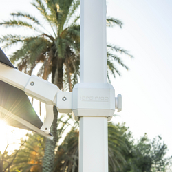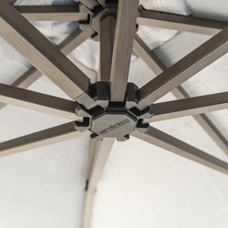Caractère is a designer parasol with a 10° canopy pitch, so nearly flat. The canopies are Sunbrella® marine grade, so won´t fade and are connected to the canopy with Loxx® buttons, a marine system.